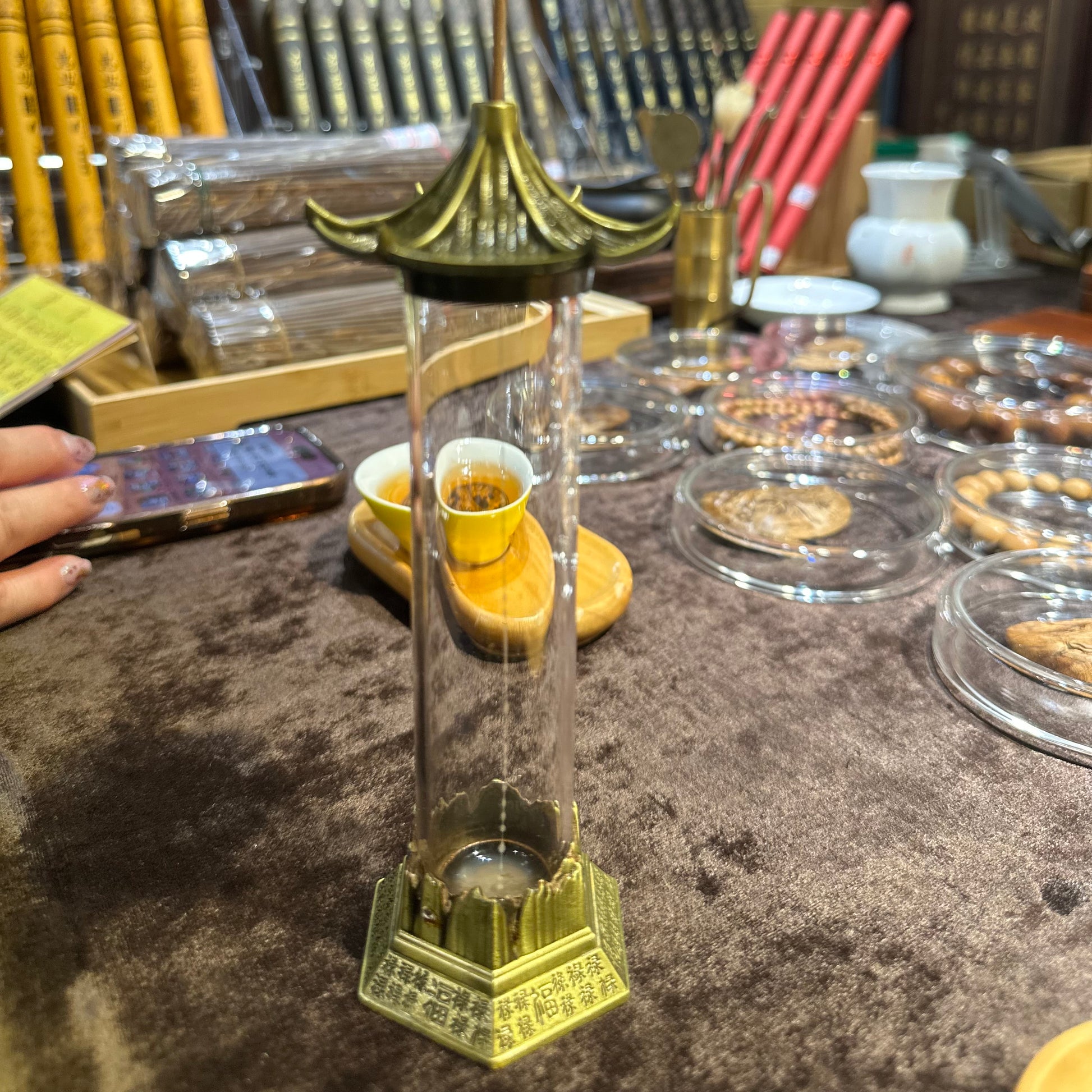 専用のケースに水を張って、線香を立てると、まるで糸を垂らしたように