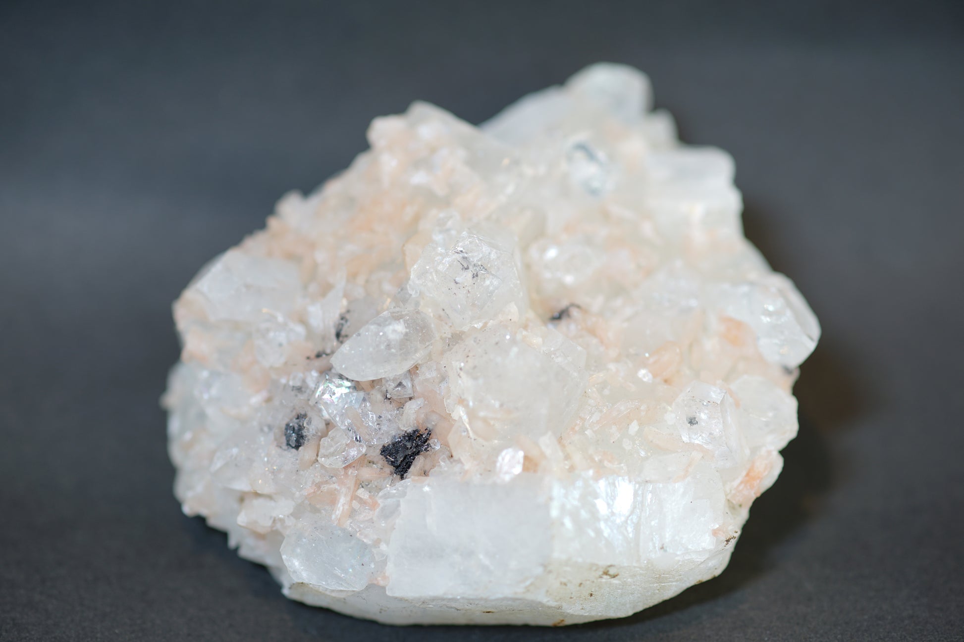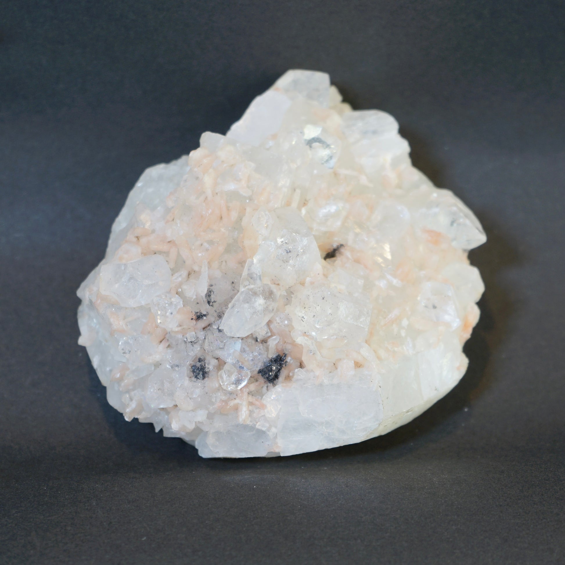 アポフィライトは、和名を魚眼石と言います、アポフィライトの表面の輝きが魚の眼に似ているところから名づけられました。アポフィライトの語源は、葉の様に簡単に剥がれる、という意味です。瞑想を助ける霊力を授ける石として、波動エネルギーを同調して伝達する役目があると謂われています、水や日光での浄化に不向きです