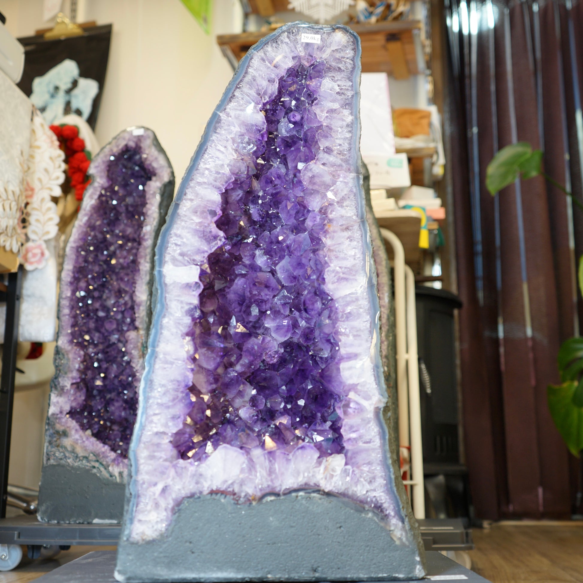 粒が揃って、カルサイトを内包した綺麗なブラジル産アメジストドームです
