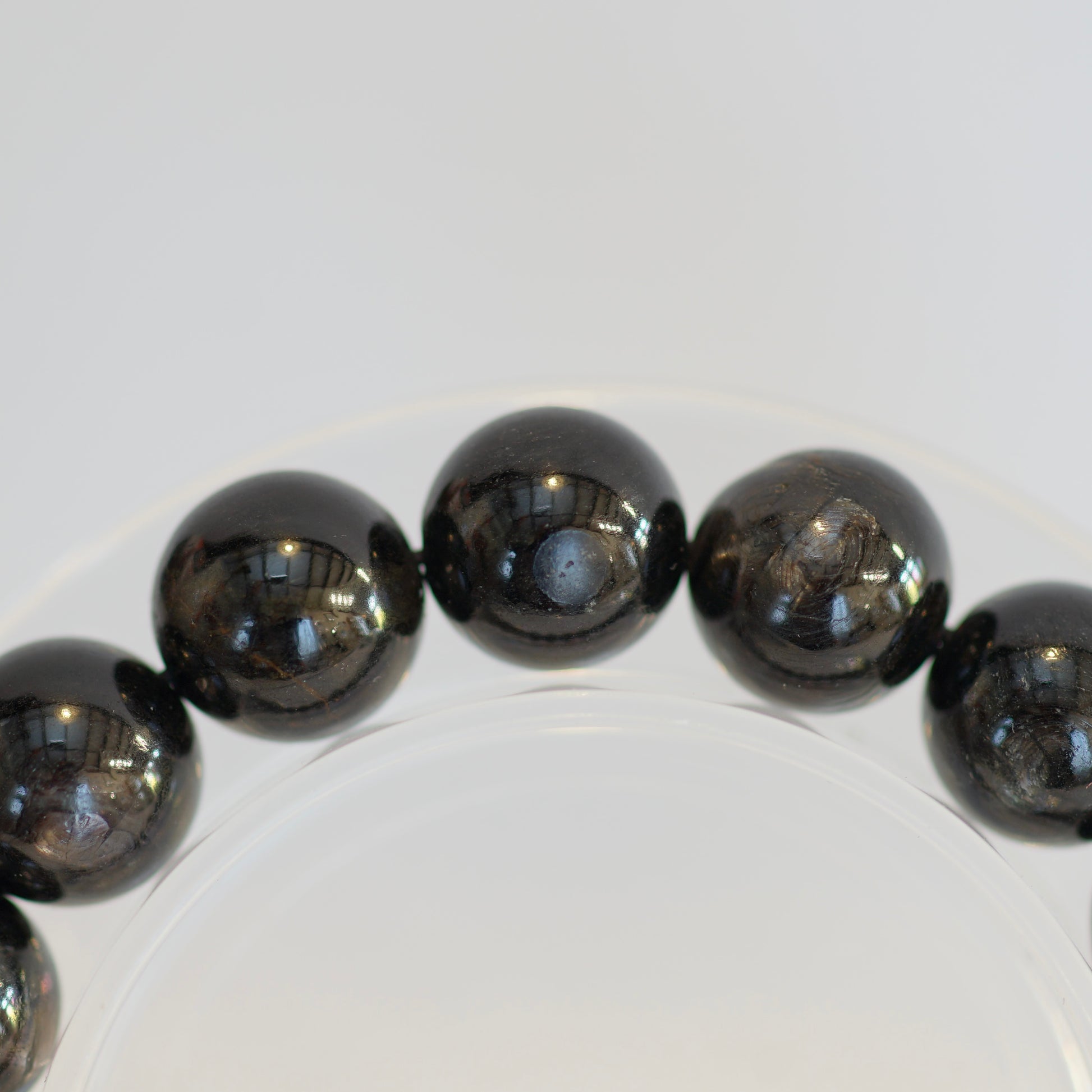 ハイパーシーンは、ギリシャ語で「Hyper(超越)」と「sthenos(強さ)」を組み合わせた「超越した力」の名前が付けられ、独特な輝きと力強いエネルギーで、人気のパワーストーンです、マグネシウムと鉄、ケイ酸を主成分とした黒色や濃褐色、灰緑色の地色に、金属的な光沢が特徴です